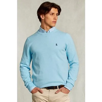 River Woods Normal Fit Basic Cotton Crew Neck Pullover Bora Bora Mix Blu