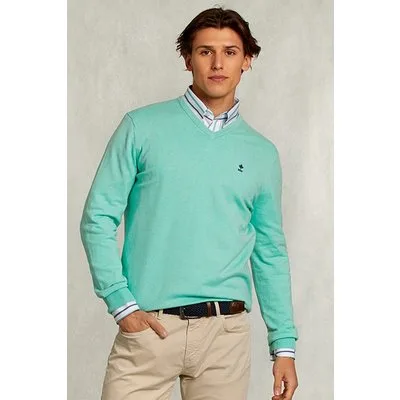 River Woods Normal Fit Basic Cotton V-neck Pullover Gimlet Mix Green