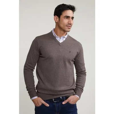 River Woods Normal Fit Basic Cotton V-neck Sweater Croissant Mix