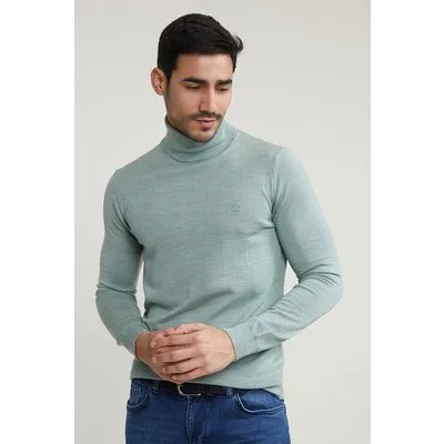 River Woods Slim Fit Basic Merino Roll Neck Sweater Cape Green Mix