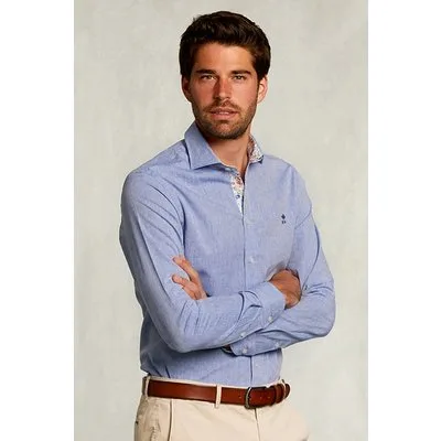 River Woods Slim Fit Cotton-linen Shirt Blue Blue
