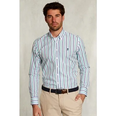 River Woods Slim Fit Striped Shirt Green/blue Green