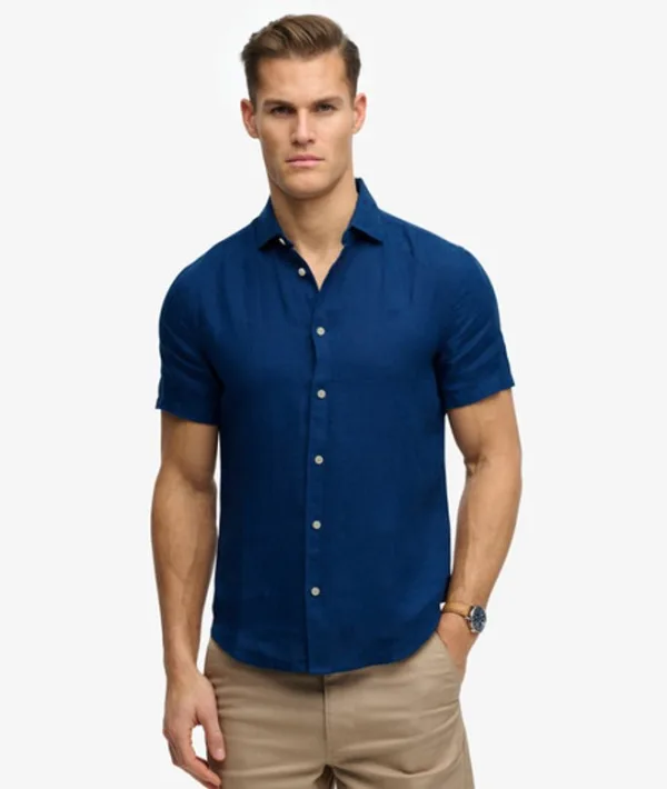 Relaxed pasvorm - de klassieke Superdry pasvorm. Niet te smal, niet te los, precies goed. Kies je normale maat Enkele kraag met doorlopende knoopsluiting Geborduurd logo op de borst Kenmerkend label op de zoom Het Riviera Linnen Overhemd met Korte Mouwen is samengesteld om je zomergarderobe te verrijken. Gemaakt van geweven linnen stof, lichtgewicht en van onberispelijke kwaliteit, waardoor het een onmisbaar item is voor warm weer.