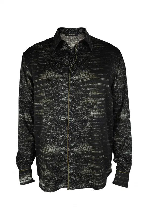 Overhemd met kaaimanprint van Roberto Cavalli.Piping in koordstijl.Logopatch op de hals.Puntige kraag.Lange mouwen met manchetten met knopen.Verborgen knoopsluiting aan de voorkant.Klassieke pasvorm.Gemaakt in Italië.