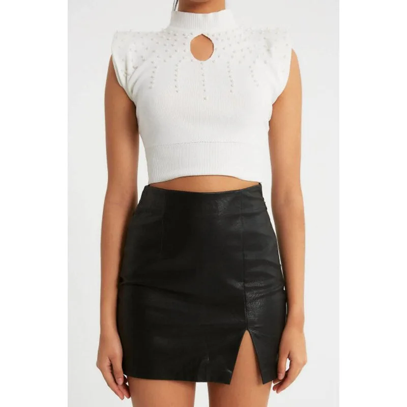 Dames Elastische Ribstof Top - T93545 - Wit - Dames Elastische Ribstof Top Heeft mouwloos en een ronde hals Het martiaal bestaat uit 100% Polyester