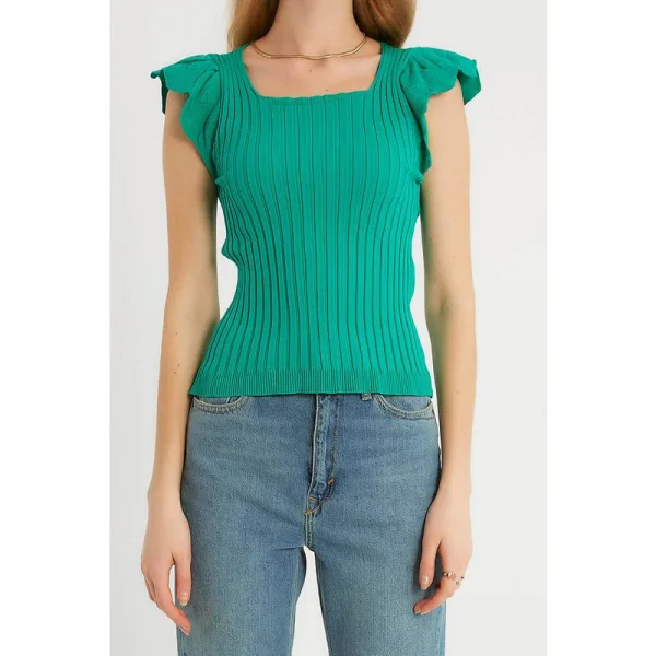 Dames Elastische Ribstof Top - T93547 - Groen - Dames Elastische Ribstof Top Heeft mouwloos en een vierkante halslijn Het martiaal bestaat uit 100% Polyester