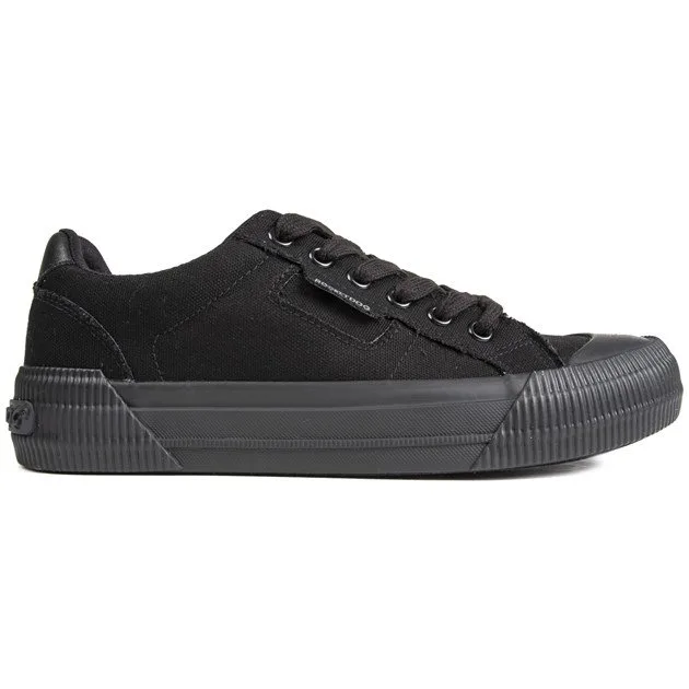Breng wat leven en retrovibe in je sneakerscollectie. met de Cherry damesplimzool van Rocket Dog. Gemaakt van stevig canvas. de stijlvolle zwarte gympen zijn afgewerkt met een gevulkaniseerde zool. kenmerkend logo met rubberen neus en metalen oogjes.