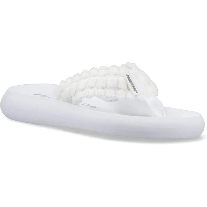 De Rocket Dog Spotlight White Cloud Flip-Flop is een damesstijl met witte webbingbanden op een witte EVA-zool met een platformhoogte van 2,5 cm.