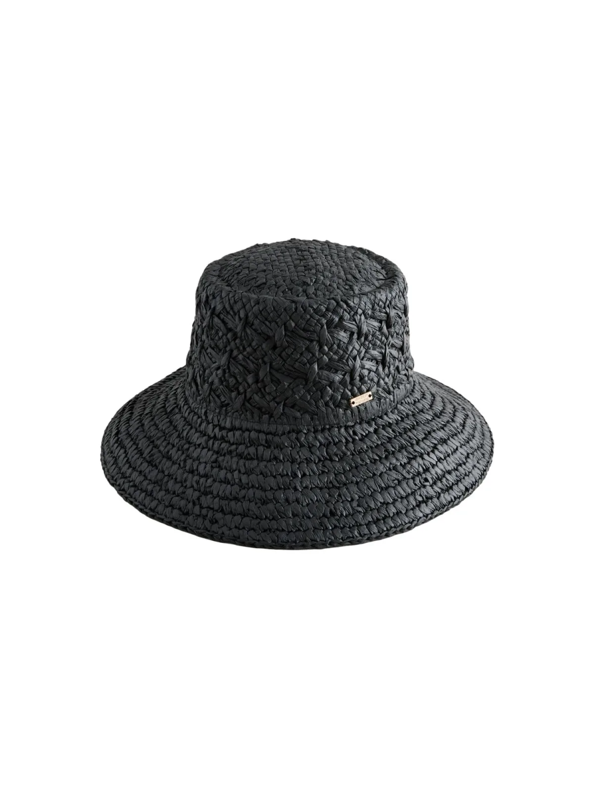 Design: Omgeslagen zoom; Motief: Effen; Materiaal: Stro materiaal; Type hoed: Vissershoed; Extra's: Gevlochten structuur, Label plaatje, Op staal naden