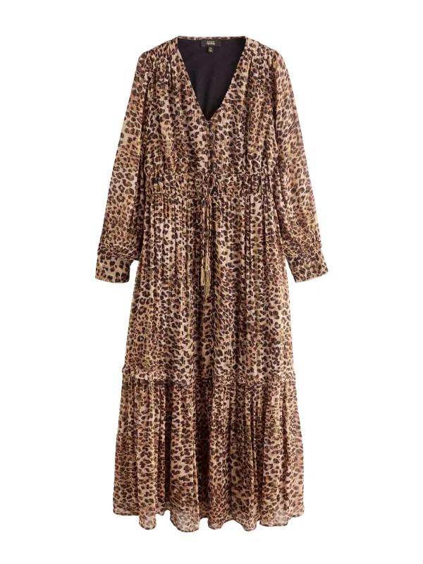 Design: Gevoerde zoom/rand; Type sluiting: Knoopsluiting; Materiaal: Viscose; Halstype: V-hals; Motief: Dierenprint; Details: Franjes, Ruches, Plooien, Gedrapeerd; Extra's: All-over patroon; Lengte: Lang/maxi; Snit: Uitlopend; Pasvorm: Normale pasvorm; Armlengte: Lange mouw