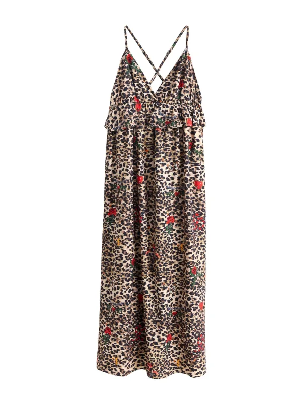 Design: Gevoerde zoom/rand, Diepe snit/decolleté; Materiaal: Jersey; Halstype: V-hals; Motief: Dierenprint; Soort bandjes: Spaghettibandjes; Details: Ruches, Gedrapeerd; Extra's: Verstelbare bandjes, All-over patroon, Voelt zacht aan; Lengte: 3/4 lengte; Snit: Recht; Pasvorm: Normale pasvorm; Armlengte: Mouwloos