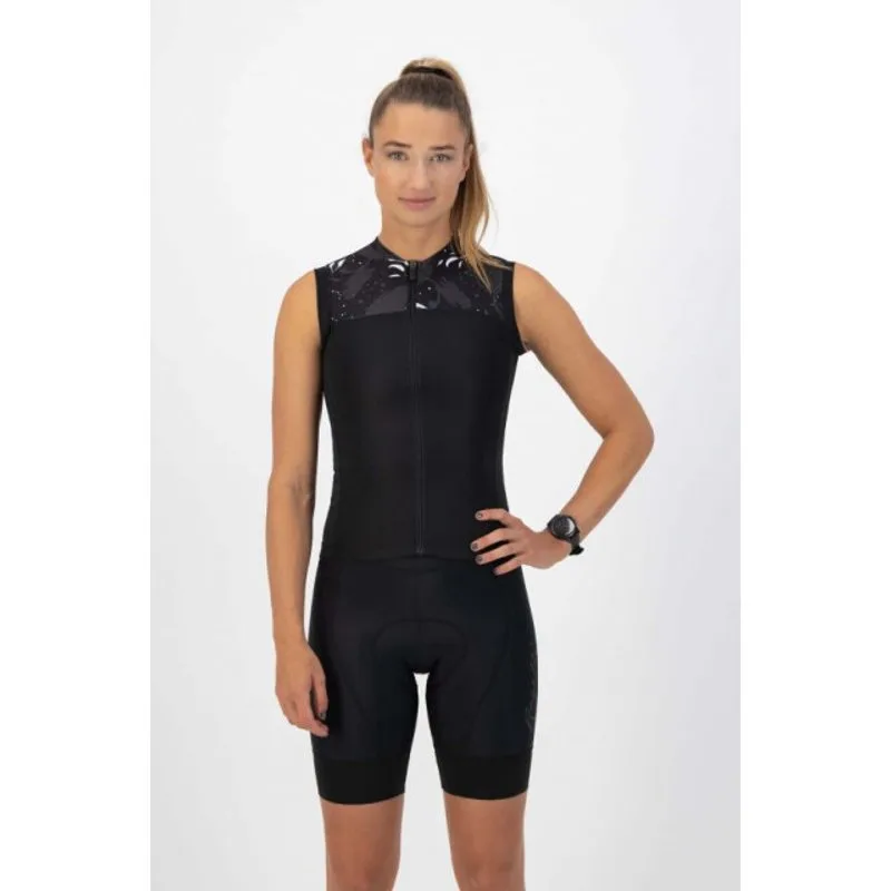 Rogelli Harmony Fietsshirt Dames Fiets jij graag in de zomer, maar baal je van de beroemde én beruchte wielerarmen? Dan is het Harmony fietsshirt iets voor jou! Dit fietsshirt is namelijk mouwloos, waardoor je volledige armen de zon te zien krijgen in plaats van alleen je onderarmen. De rand van de armgaten is voorzien van een comfortabele afwerking die prettig aanvoelt op de huid. Rogelli Harmony Dames Fietsshirt De Harmony heeft een aansluitende Race pasvorm en is gemaakt van een elastische stof. De ventilerende en ademende kwaliteiten van deze stof helpen je lichaamstemperatuur te reguleren. De Harmony heeft naast een stijlvolle zomerse print, ook drie handige achterzakken en een extra achterzak met rits. Daarnaast is het fietsshirt voorzien van Siliconen grip, zodat het shirt goed blijft zitten tijdens het fietsen en niet opkruipt.