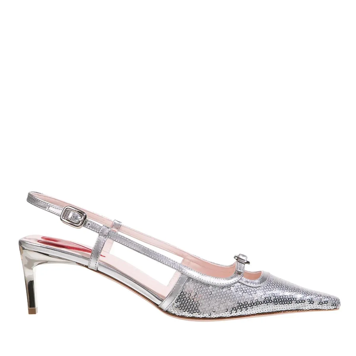 Roger Vivier Hoge hakken – Mini Buckle Sling Back in zilver