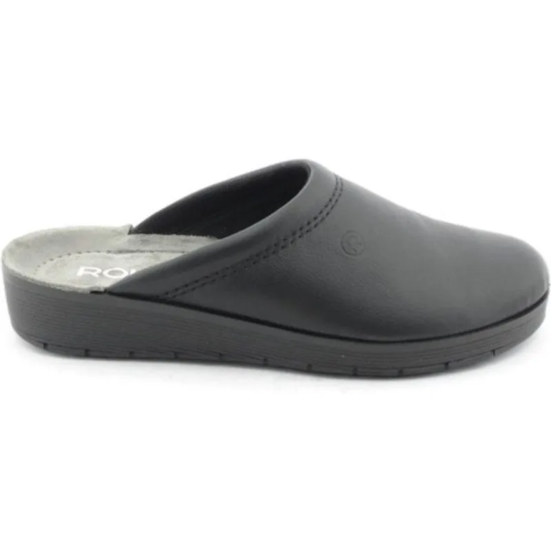 Artikel 2337 in kleur 90-Zwart is een prachtige zwarte pantoffel met open hiel, voor dames, van het merk Rohde. De zool is van rubber. De voering is gedeeltelijk leer. De voetwijdte is G. Rohde is een Duits merk en is wereldwijd marktleider op het gebied van pantoffels en sandalen. Rohde, opgericht in 1862, heeft een zeer uitgebreide collectie, kwalitatief hoogwaardige, pantoffels en sandalen maar ook schoenen en laarzen. Bij de productie maakt Rohde gebruik van zachte en soepele materialen. Mede hierdoor is het draagcomfort erg hoog. Bovendien is het schoeisel van Rohde licht in gewicht wat het draagcomfort ten goede komt. De decennia lange ervaring van Rohde is terug te vinden in de pasvorm van de pantoffels, slippers, sandalen, schoenen en laarzen.