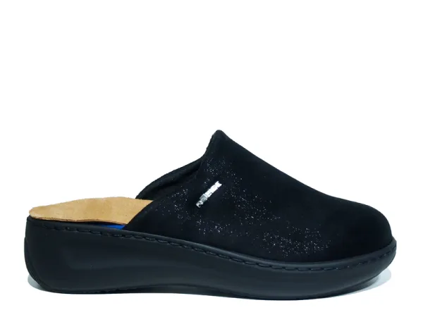 Muilen van het topmerk Rohde. Dit model heeft een stretch voorblad, rekt mee met de vorm van de voet. Doordat het voetbed uitneembaar is, kunnen ook eigen inlegzolen gedragen worden. Deze pantoffels van Rohde, artikelnummer 6780