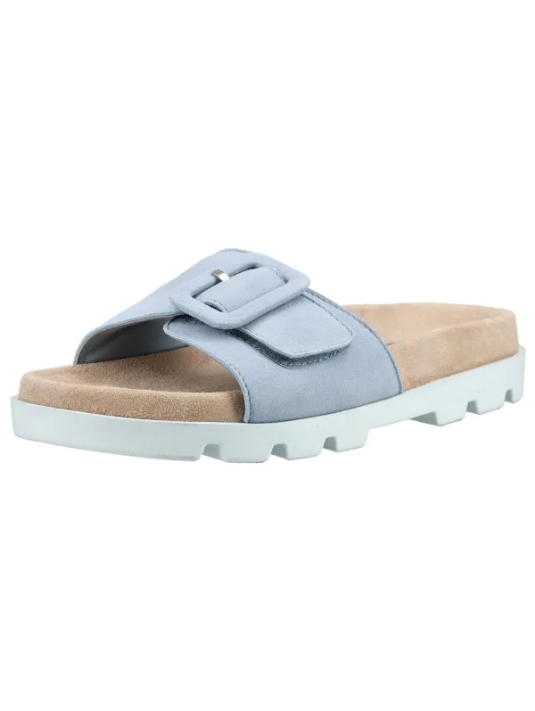 Design: Anatomisch gevormd voetbed; Type sluiting: Slip; Materiaal: Leer; Motief: Effen; Plateau: Met plateau; Materiaal: Suède; Schoenneus: Open toe; Extra's: Flexibele zool; Hakhoogte: Platte hak (0-3 cm)