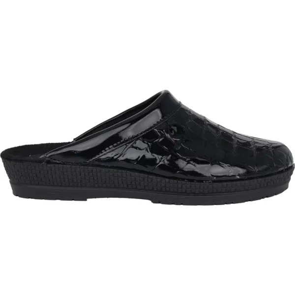 Nu is er deze damesklomp met lakleer in een gelimiteerde oplage. Het binnenmateriaal van wol en het zacht gevoerde voetbed zijn ook gemaakt van hoogwaardig leer. De antislip synthetische buitenzool is versierd met het ROHDE vintage logo uit 1988. Deze EASYS is een origineel - net als jij!