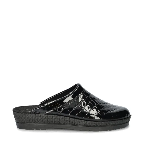 Rohde dames pantoffel Ook pantoffels mogen er hip uit zien. Deze muilen van het merk Rohde zijn een echte verwennerij voor je voeten! Uitgevoerd in lakleer met trendy reptielenprint. Gevoerd met scheerwol wat voor warme voeten zorgt ook op de koudste dagen. Voorzien van een voorgevormd voetbed wat voor goede steun en een aangename pasvorm zorgt. De stevige rubberen loopzool maakt dat deze pantoffel ook prima om het huis te dragen is. Let op! Deze pantoffel valt klein. Wij raden aan een maat groter te bestellen.