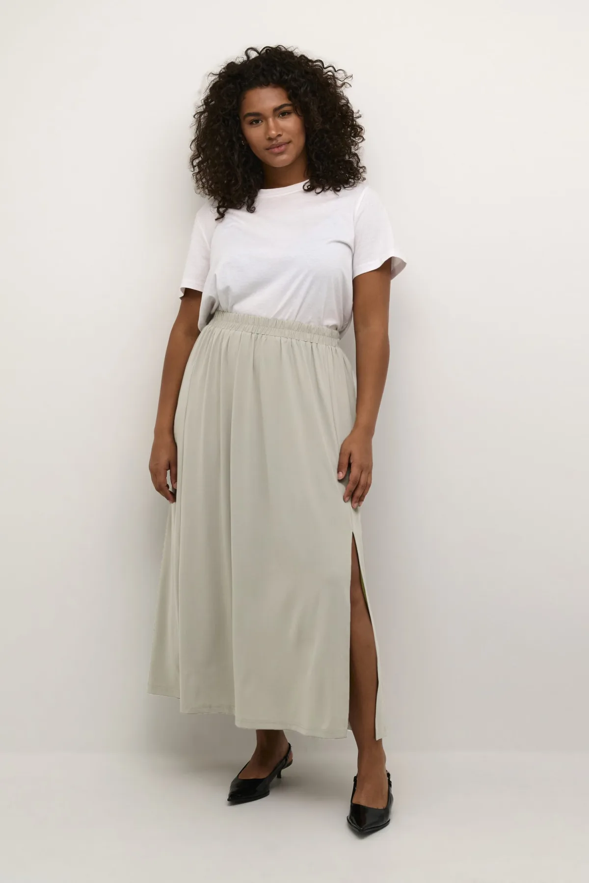 Design: Beenopening, Elastische taille/zoom; Motief: Effen; Rokvorm: A-lijn rok; Details: Gedrapeerd; Extra's: Gladde stof; Lengte: 7/8 lengte; Pasvorm: Losse pasvorm