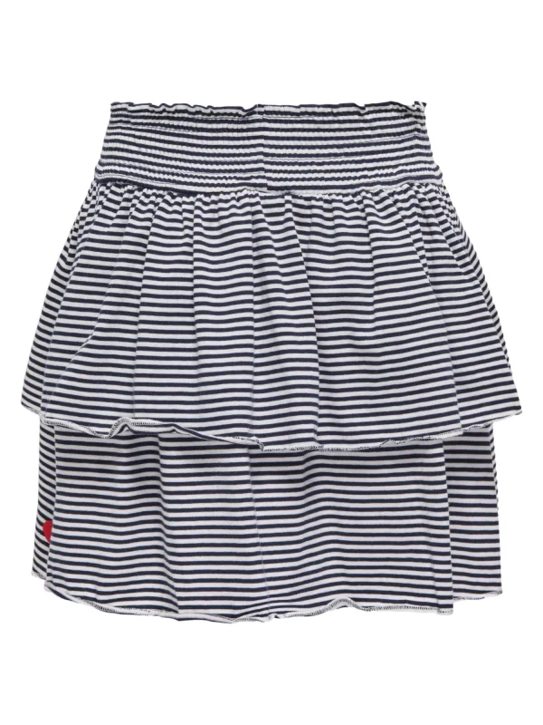 Deze gestreepte meisjesrok brengt kleur en luchtigheid in je dagelijkse leven. Met zijn dijlengte en normale pasvorm biedt hij je veel bewegingsvrijheid en een comfortabel gevoel. De elastische, gesmokte tailleband zorgt voor een perfecte pasvorm en is eenvoudig te verstellen. De meerlagige look geeft de rok een speelse swing bij elke stap. Het hartvormige borduursel voegt een lief accent toe en maakt het ontwerp bijzonder vertederend. De open zoom benadrukt de casual look en voegt een luchtige touch toe. Het zachte materiaal voelt aangenaam aan op de huid en maakt de rok de ideale metgezel voor warme dagen. Een geweven label aan de binnenkant laat de hoogwaardige afwerking zien. In combinatie met een T-shirt of blouse - deze rok past bij veel outfits. Ideaal voor school, vrije tijd of feestelijke gelegenheden.