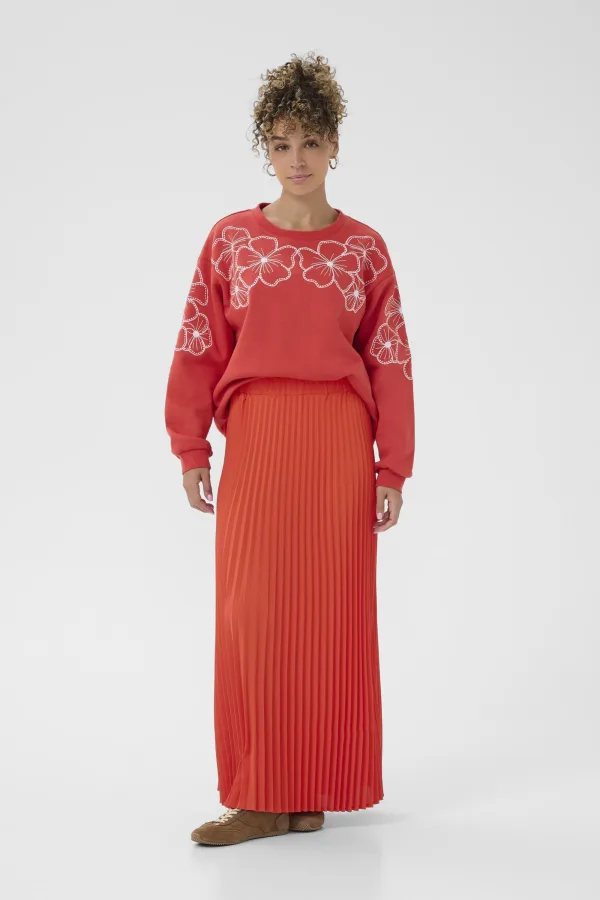 Deze geplooide maxi-rok biedt een comfortabele, losse pasvorm met een elegante, vloeiende uitstraling en een elastische taille. Ideaal voor diverse gelegenheden.