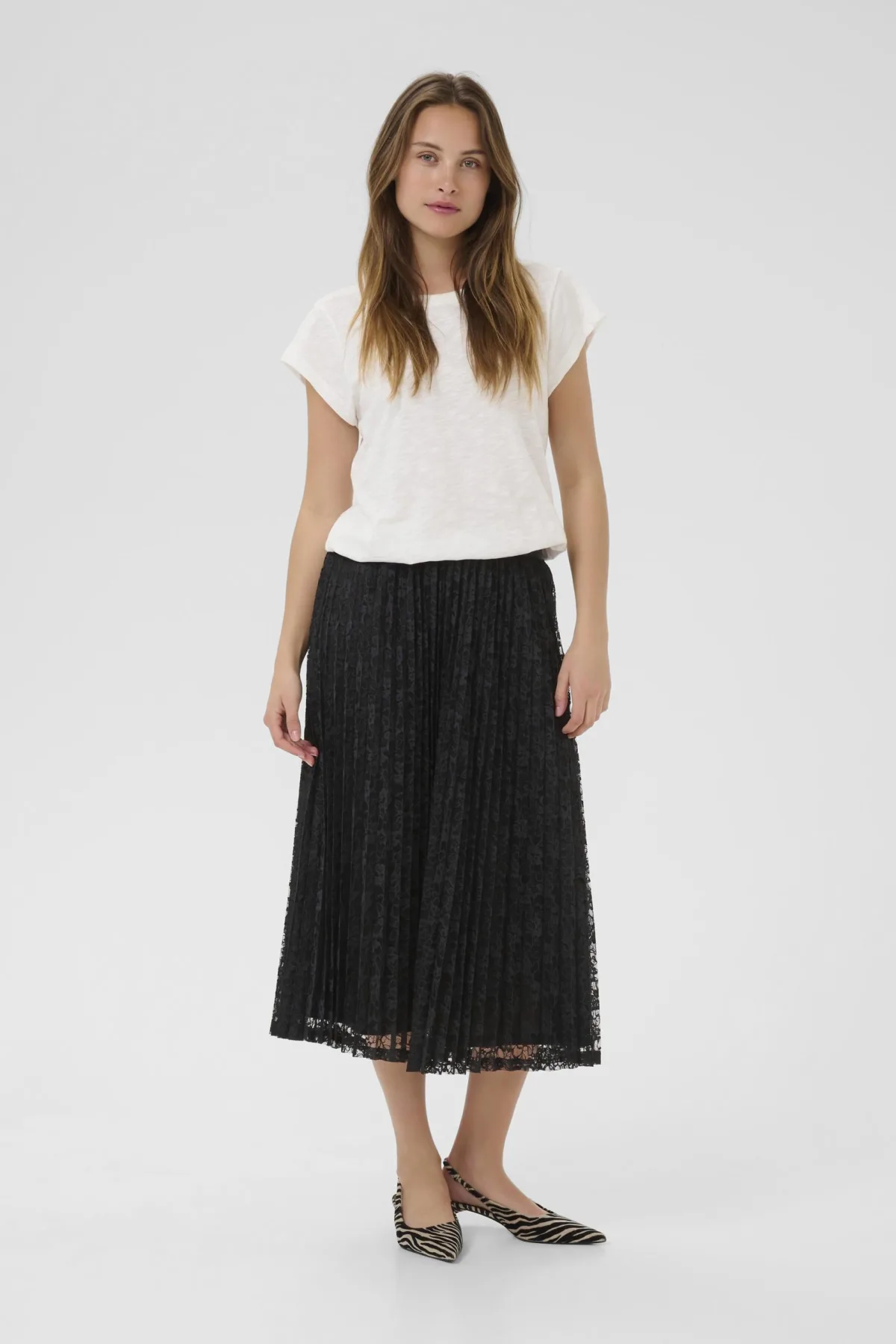 Design: Elastische taille/zoom; Motief: Effen; Rokvorm: Plooirok; Details: Kant, Plissé; Extra's: Op staal naden; Lengte: 3/4 lengte; Pasvorm: Normale pasvorm