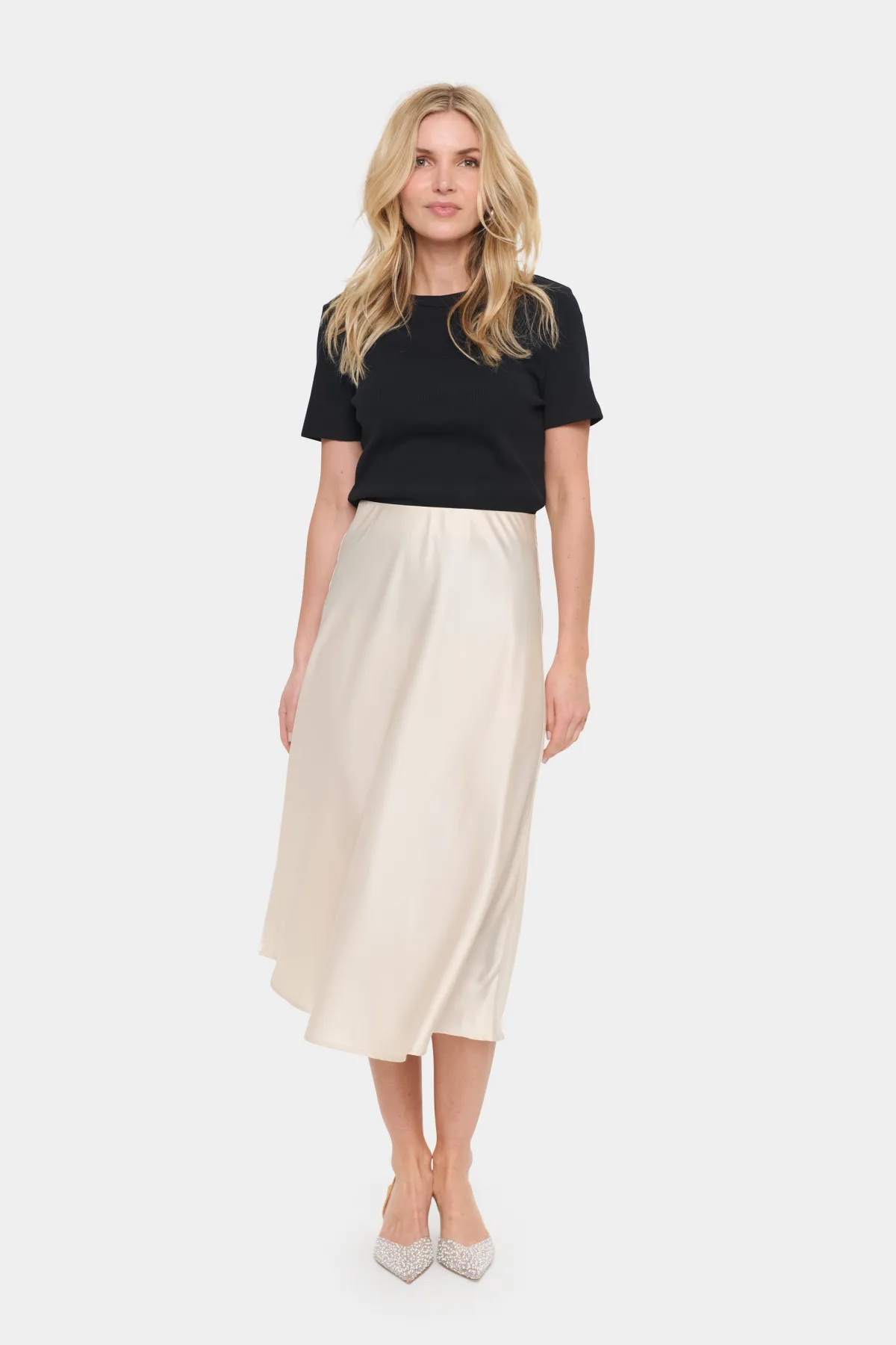 Deze dames satijnen midi-rok combineert een ontspannen pasvorm en soepele silhouet met een elastische tailleband. De midi-lengte maakt de rok geschikt voor zowel dagelijks gebruik als formele gelegenheden. Fijne was 30°, niet bleken, niet in de droger drogen, Druipnat ophangen in de schaduw, koud strijken max. 110° C, 97% Polyester,3% Elastaan
