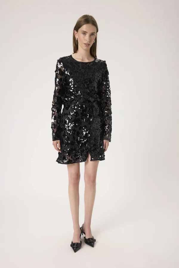 Deze mini-rok met pailletten heeft een rechte pasvorm en comfortabele tailleband. De rok biedt een elegante look en is geschikt voor elke gelegenheid.