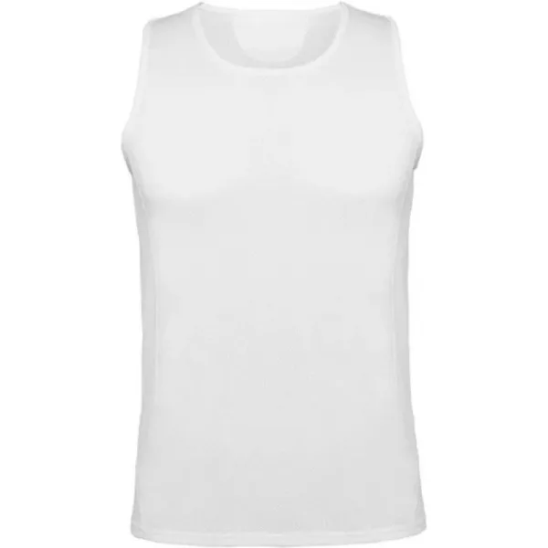 100% Polyester. Stof: Pique. Ontwerp: Eenvoudig. Hals: Schep. Mouwtype: Mouwloos. Stoftechnologie: Ademend. Zijnaden, Tearaway Label. 140gsm. Duurzaamheid: Oeko-Tex Standaard 100 Gecertificeerd. Verpakking: Polyzak. S: 37 in. M: 38,5 in. L: 40 in. XL: 41,5 in. XXL: 43,5 in.