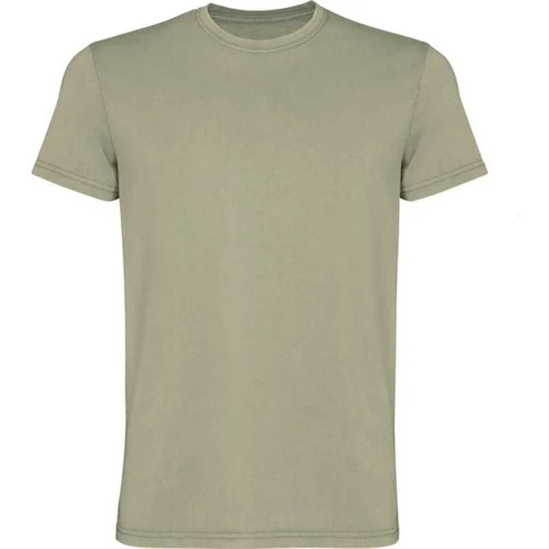 100% Katoen. Stof: Enkelvoudig gebreid. Uitvoering: Acid Wash, Effen. Halslijn: Crew Neck, Ribbed. Mouwtype: Korte mouwen. Toon-op-toon doorstiksels. 180gsm.