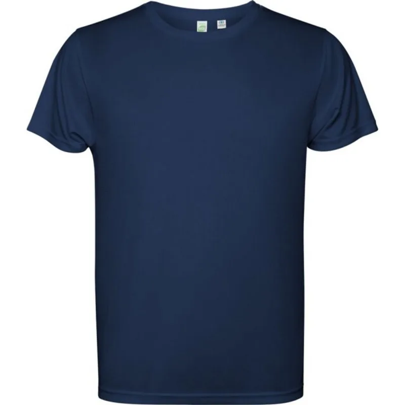 100% gerecycleerd polyester. Stof: Interlock, Gebreid. Ontwerp: Eenvoudig. Hals: Crew Neck. Mouwtype: Korte mouwen. Voorste zijnaad. 120 gsm. Duurzaamheid: GRS-gecertificeerd, Oeko-Tex Standaard 100 gecertificeerd. Verpakking: Polybag.