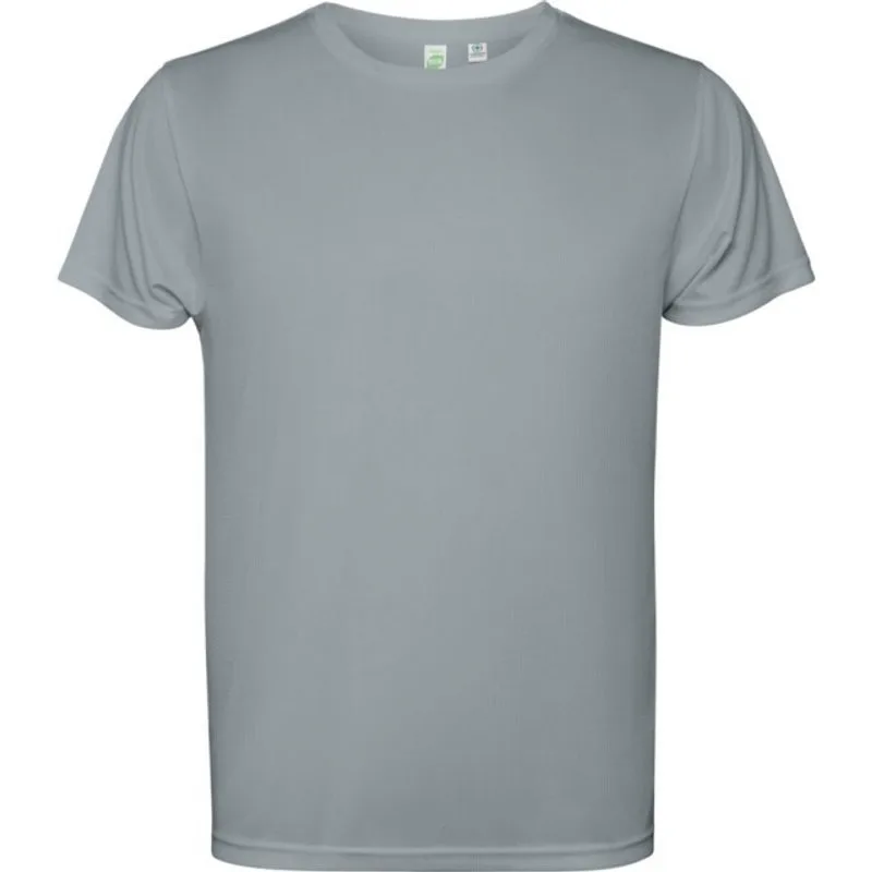 100% gerecycleerd polyester. Stof: Interlock, Gebreid. Ontwerp: Eenvoudig. Hals: Crew Neck. Mouwtype: Korte mouwen. Voorste zijnaad. 120 gsm. Duurzaamheid: GRS-gecertificeerd, Oeko-Tex Standaard 100 gecertificeerd. Verpakking: Polybag.