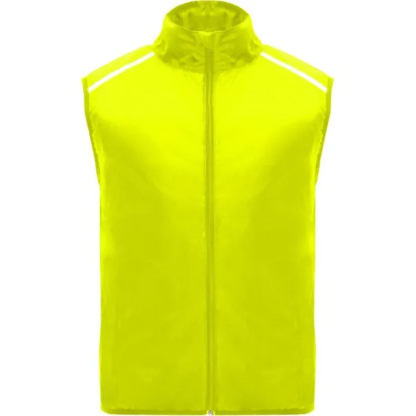 100% Polyester. Ontwerp: Contrasterende details. 70gsm. Stof Technologie: Ademend, Lichtgewicht, Winddicht. Manchet: Gebonden, Elastisch. Kinbeschermer, High-Vis, afscheurbaar label. Halslijn: Hoog-Neck. Mouwtype: Mouwloos. Zakken: 2 Zijzakken. Bevestiging: Volledige ritssluiting. Zoom: Gebonden, Elastisch. Duurzaamheid: Oeko-Tex Standaard 100 Gecertificeerd. Verpakking: Polybag. Geschikt voor: Zeefdruk.