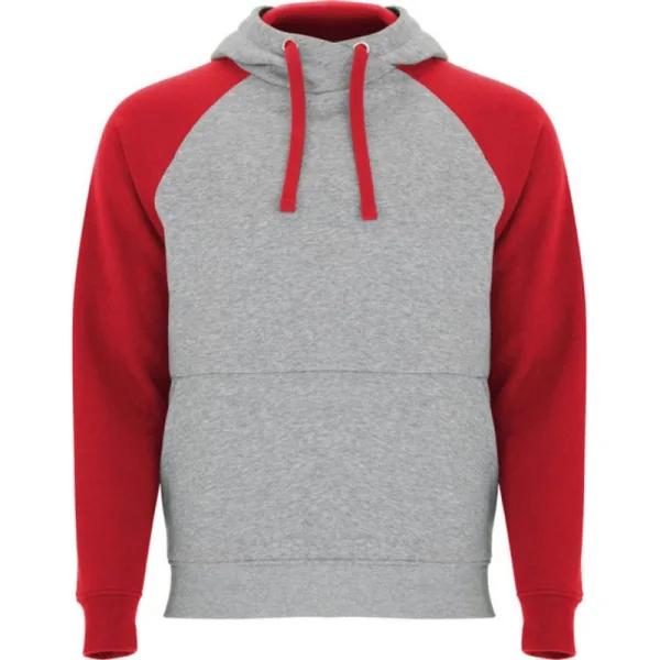 Ontwerp: Tweekleurig. Eigenschappen capuchon: Trekkoord, Opgenaaid. Zoom: Elastaan, Geribd. Overslaghals, Metalen Oogjes, Scheurbaar Label. Manchet: Elastaan, Geribd. Halslijn: Kapitein. Mouwtype: Raglan met lange mouwen, Raglan met lange mouwen. Zakken: 1 Kangoeroezak. Bevestiging: Trek aan de achterkant.