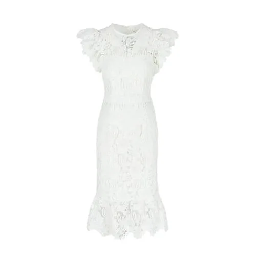 Deze LOLALIZA jurk met midi lengte en ronde hals is perfect voor elke gelegenheid. Het kapmouwtje en de details van kant en ruches geven deze witte jurk een elegante uitstraling.