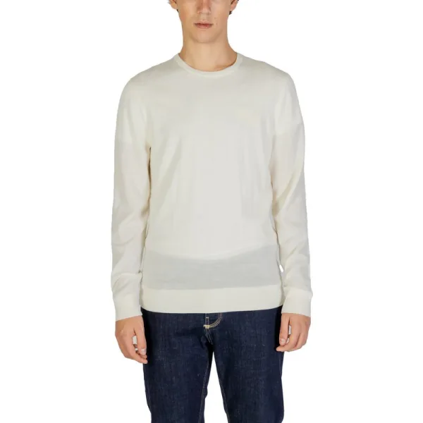 Wikkel, laag en til je dagelijkse stijl naar een hoger niveau met deze Calvin Klein Jeans trui met ronde hals. Ervaar ongeëvenaard comfort en tijdloze verfijning, vervaardigd uit 100% premium merinowol. Dit fijne breiwerk biedt uitzonderlijke zachtheid en warmte, waardoor het ideaal is voor koelere dagen. De klassieke ronde hals en veelzijdige gebroken witte tint zorgen voor een moeiteloze styling, terwijl de reguliere pasvorm een comfortabele, flatterende silhouet biedt. Ontworpen voor duurzame kwaliteit en gemakkelijk onderhoud, maakt deze luxueuze trui een naadloze overgang van casual uitjes naar meer verfijnde gelegenheden en voelt hij exquisite aan op je huid.