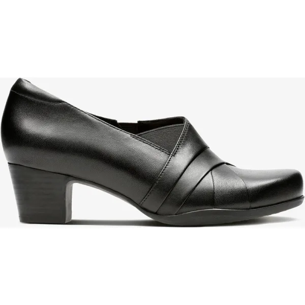Rosalyn Adele komt samen met gevouwen leren details bij de bovenkant, waardoor je werkkleding en formele looks direct worden opgewaardeerd. Gevestigd op een stabiele, gemakkelijk te dragen hak, is deze tijdloze zwart leren pump voorzien van subtiele elastieken panelen voor een comfortabele pasvorm en eenvoudig aan- en uittrekken. En, met onderstaand comfort als topprioriteit, is het verbeterd met Contour Cushion-technologie die de ondersteuning maximaliseert met zijn superzachte gerichte cushioned.