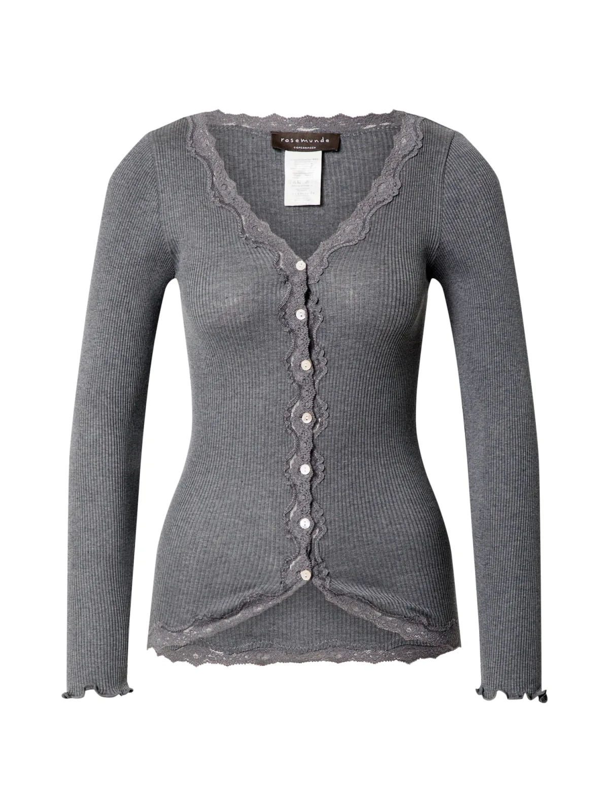 Design: Asymmetrische zoom, Knop placket, Zoom/rand met boord, Getailleerd model; Type sluiting: Knoopsluiting; Materiaal: Jersey; Halstype: V-hals; Motief: Effen; Details: Kant; Extra's: Met textuur, Voelt zacht aan; Pasvorm: Aansluitende pasvorm; Armlengte: Lange mouw; Lengte: Normale lengte