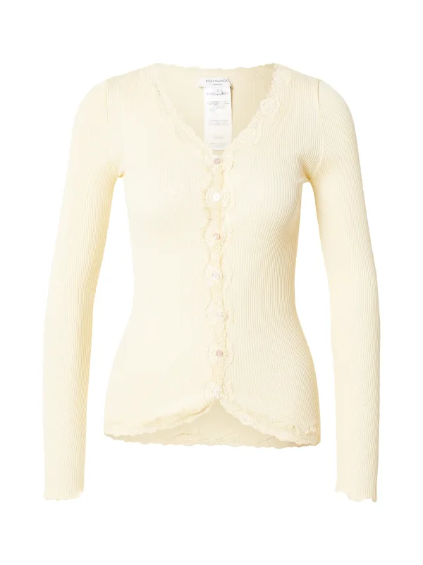 Design: Knop placket, Zoom/rand met boord; Type sluiting: Knoopsluiting; Materiaal: Jersey; Halstype: V-hals; Motief: Effen; Details: Kant; Extra's: Fully fashioned, Voelt zacht aan; Pasvorm: Aansluitende pasvorm; Armlengte: Lange mouw; Lengte: Normale lengte
