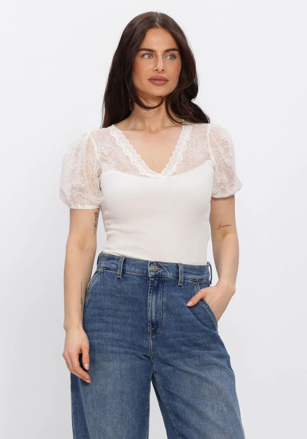 - De laagste prijs van Rosemunde Beatha Full Lace V-neck T-shirt Dames - Topjes - Creme - Maat M werd gevonden op 29 april 2026 12:19.