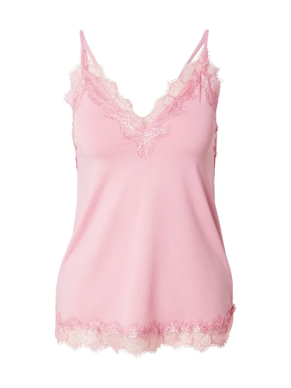 Blouse type: Blouseshirt; Design: Diepe snit/decolleté, Geschulpte zoom; Materiaal: Jersey; Halstype: V-hals; Motief: Effen; Kraag: Zonder kraag; Soort bandjes: Spaghettibandjes; Details: Kant; Extra's: Verstelbare bandjes, Op staal naden, Voelt zacht aan; Pasvorm: Normale pasvorm; Armlengte: Mouwloos; Lengte: Normale lengte