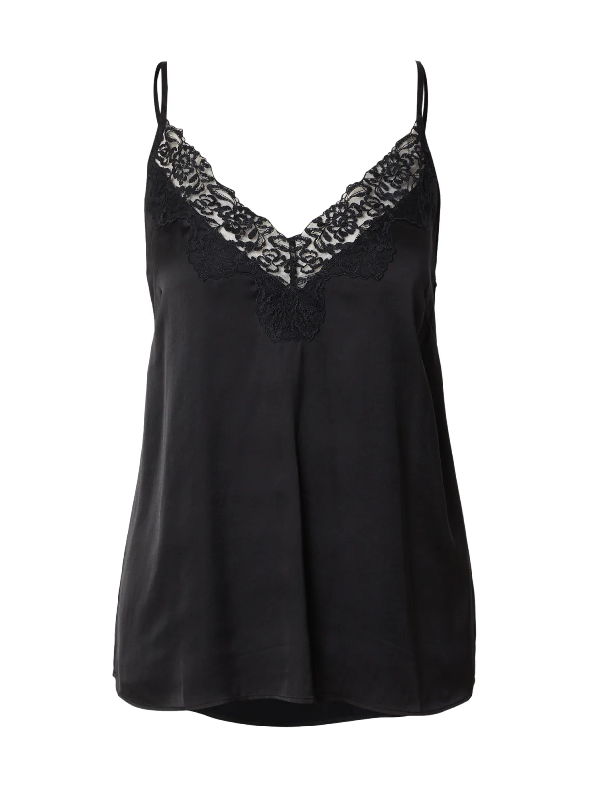 Design: Figuurnaden, Diepe snit/decolleté; Materiaal: Satijn; Halstype: V-hals; Motief: Effen; Soort bandjes: Spaghettibandjes; Details: Kant; Extra's: Verstelbare bandjes, Gladde stof; Pasvorm: Normale pasvorm; Armlengte: Mouwloos; Lengte: Normale lengte