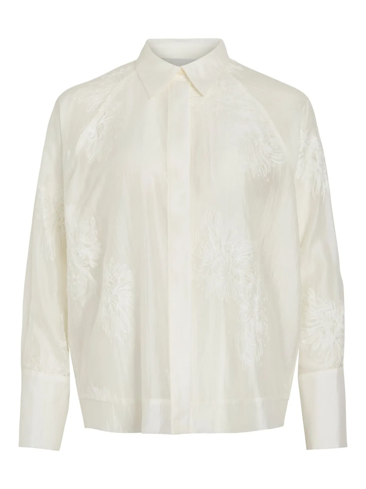 Blouse type: Klassieke blouse; Design: Gevoerde zoom/rand, Verborgen knop placket; Type sluiting: Knoopsluiting; Materiaal: Lyocell; Extra's: Licht transparant, All-over patroon; Pasvorm: Wijde pasvorm; Armlengte: Lange mouw; Lengte: Normale lengte