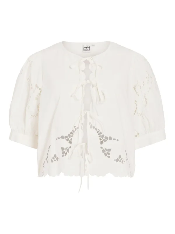 Blouse type: Klassieke blouse; Design: Om te knopen/binden; Materiaal: Katoen; Motief: Effen; Kraag: Zonder kraag; Details: Borduursels, Gedrapeerd, Mesh; Extra's: Licht transparant; Pasvorm: Normale pasvorm; Armlengte: Halve mouw; Lengte: Normale lengte