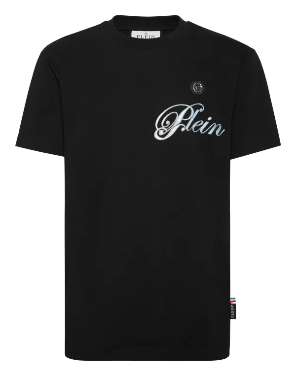 A plain T-shirt can become a must-have garment. Look at the details. Cotton jersey Laminated pattern print on the left chest and the back Logoed patch sewn on the left chest Rib knit neckline Two needle stitching