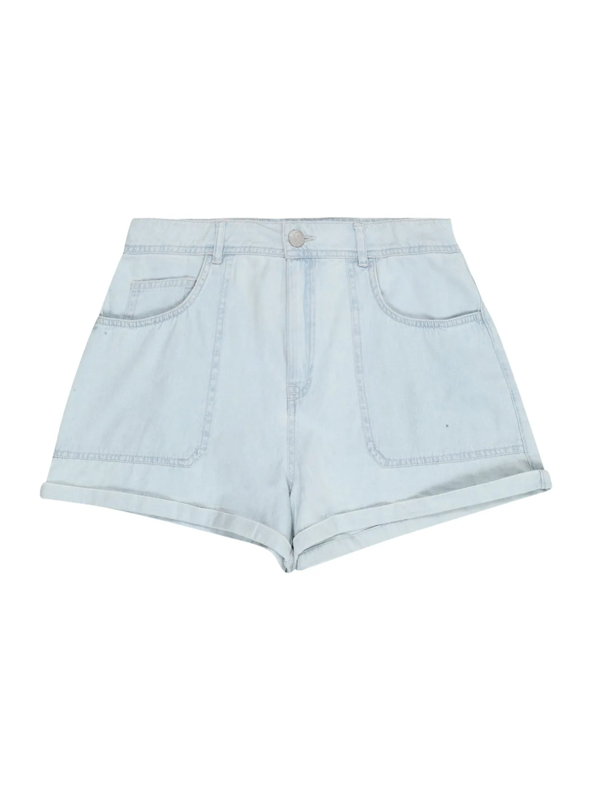 Design: Omgeslagen zoom, Ritssluiting, 5-pocket-style; Type sluiting: Ritssluiting; Voering: Niet gevoerd; Materiaal: Denim; Motief: Effen; Extra's: Op staal naden, Riemlussen; Wassing: Light washed; Lengte: Kort/mini; Pasvorm: Regular