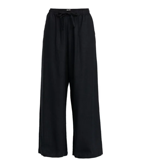KenmerkenMateriaal: Viscose linnenPasvorm: taille halverwege, uitlopende benenTaille: elastische band met stoffen trekkoordZijzakkenGestikte zak aan de achterkantSamenstelling [Hoofdmateriaal] 55% Linnen, 45% Viscose