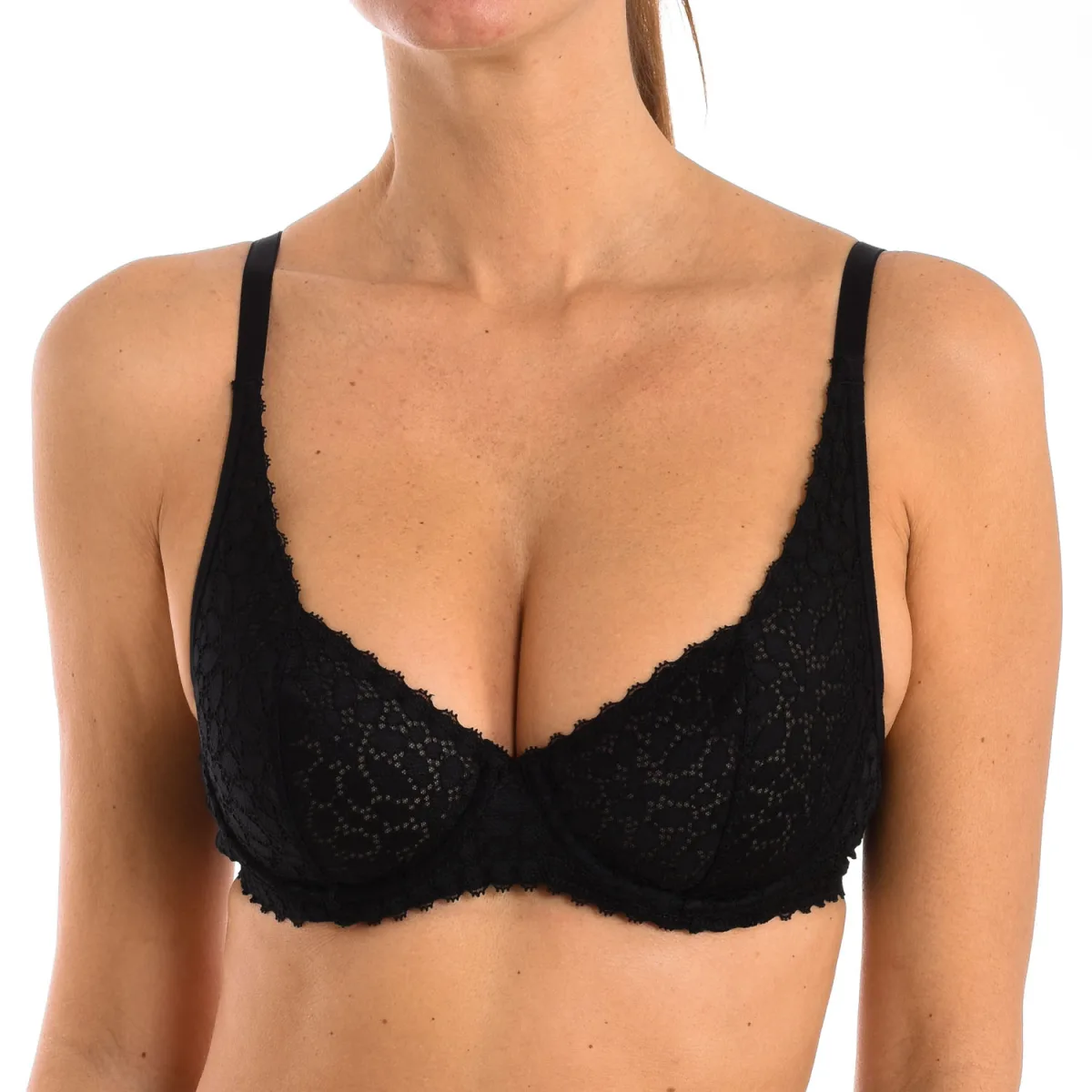 Beugelbeha.n Cups zonder schuim.n Kanten cups.n Elastische en verstelbare bandjes.n Rugsluiting met haakjes in drie standen.n Elastische zijkanten, met verstevigende staafjes.n Naden in toon zichtbaar.n Samenstelling: 89% Polyamide, 11% Elastaann Onderhoud:nWassen op max. temperatuur. 40º.n Geen bleekmiddel gebruiken.n Niet in de droger.n Niet strijken.n Niet chemisch reinigen.