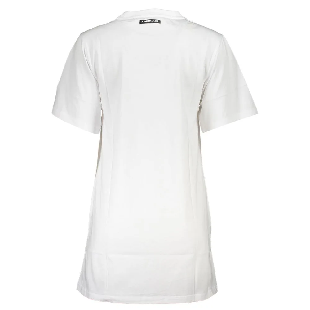 Stap naar buiten, val op en voel je geweldig in deze iconische t-shirt jurk. Geniet van moeiteloze stijl en comfort de hele dag in deze relaxte pasvorm. De unieke grafische print, met roze rozen en het Cavalli Class-logo, voegt een vleugje luxe toe aan je dagelijkse look. De korte mouwen en ronde hals creëren een veelzijdige silhouet. Profiteer van de onderhoudsvriendelijke constructie, zodat deze jurk een favoriete keuze in je garderobe blijft. Perfect voor casual uitjes of ontspannende dagen, integreert deze jurk naadloos in je levensstijl en biedt zowel comfort als hoogwaardige stijl.