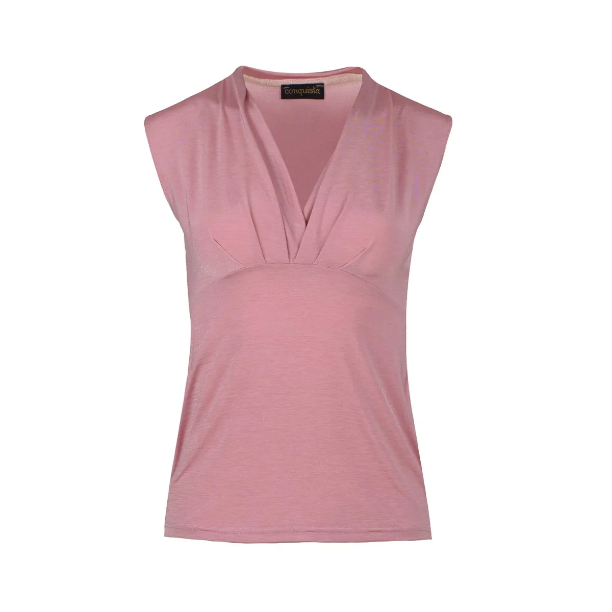 Roze Roze CONQUISTA top in stretchstof: polyamide-elastaan. Mouwloos met een faux-wrapfront waardoor een diepe V-hals ontstaat. Naad onder de buste. Lengte, voor maat 36/S, 62cm.